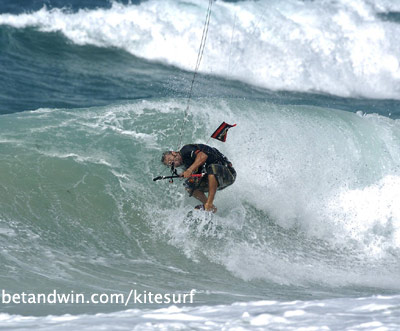 Tarifa (Cádiz) 12/05/2005 . - El BETANDWIN KITESURF PRO dio inició hoy con una jornada de altísimo nivel. Maniobras de extrema dificultad y acrobacias sobre el mar llenaron durante el día la costa de Tarifa. Los mejores riders del mundo tuvieron que poner los cinco sentidos y sus mayores capacidades técnicas para poder controlar un fuerte viento del sur que les dificultaba la salida de la playa.